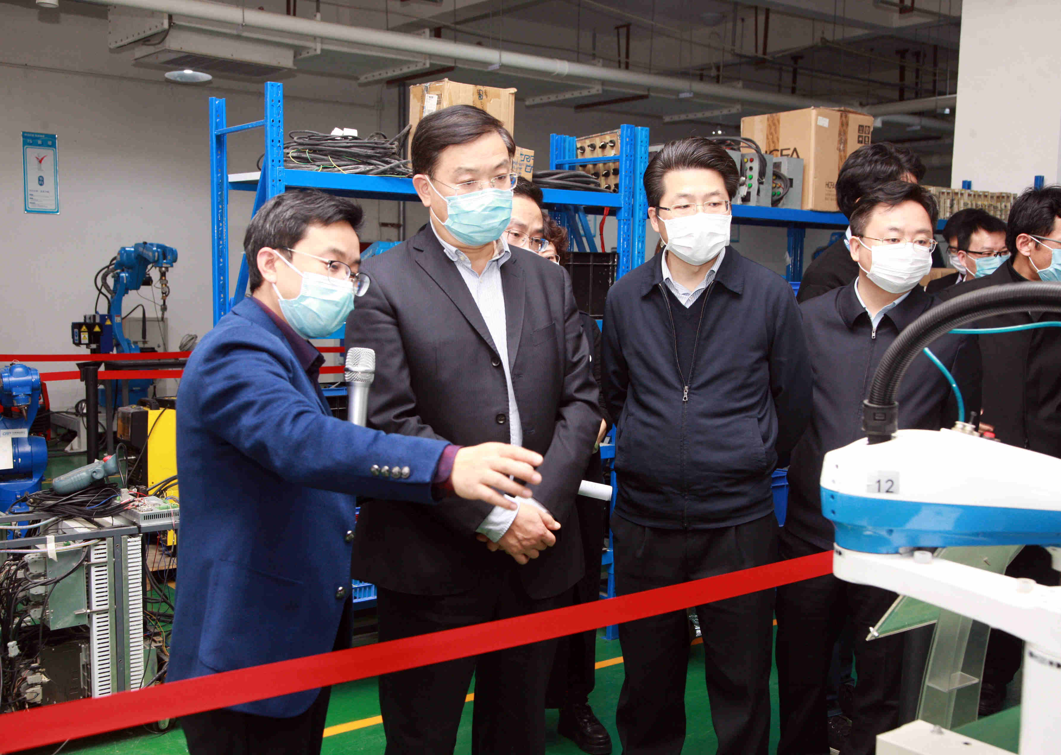 王副省长、曹副市长、刘书记等领导参观了金年汇核心产品展区,就企业的发展历史、生产效益、技术创新、产品研发等情况进行了深入了解;随后参观了金年汇机器人整机生产车间、核心零部件生产车间、机器人调试车间。交流过程中,董事长李良军向王副省长详细介绍了金年汇核心零部件生产、机器人细分领域市场容量、机器人制造工艺流程。
